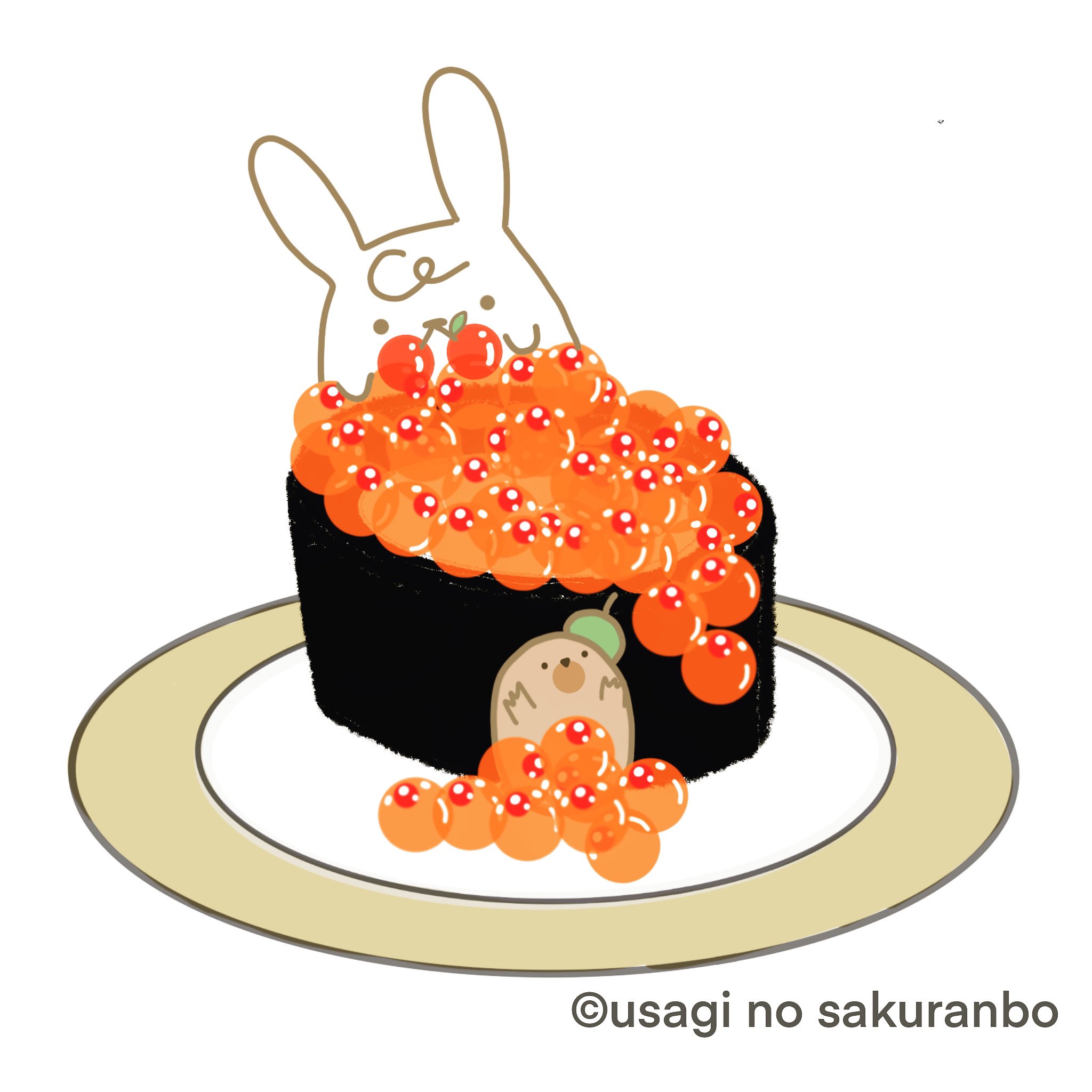 うさぎのさくらんぼ さくらんぼどーこだ イラスト イラストレーション ラビット うさぎ モグラ さくらんぼ チェリー キャラクター かわいい 癒し 絵 イラスト好きさんと繋がりたい 寿司 お寿司 いくら 回転寿司 T Co